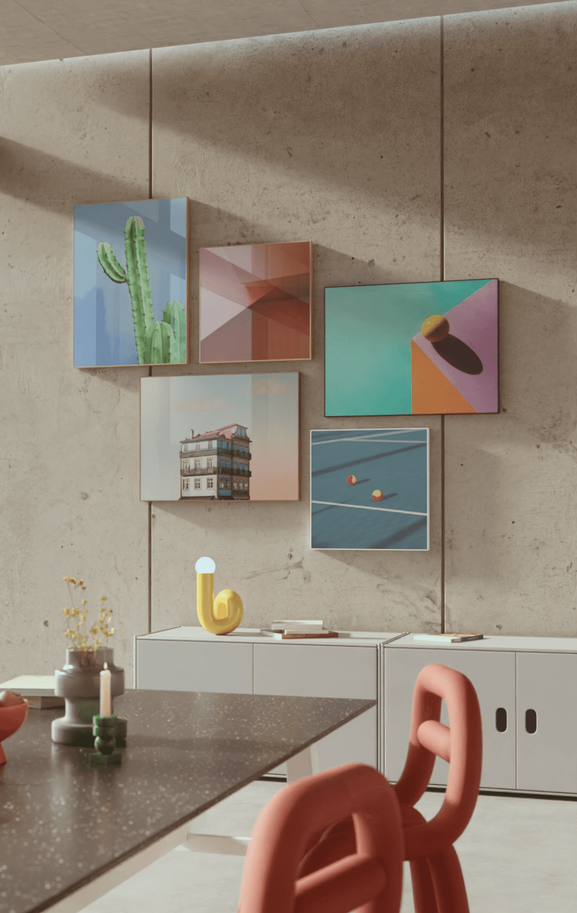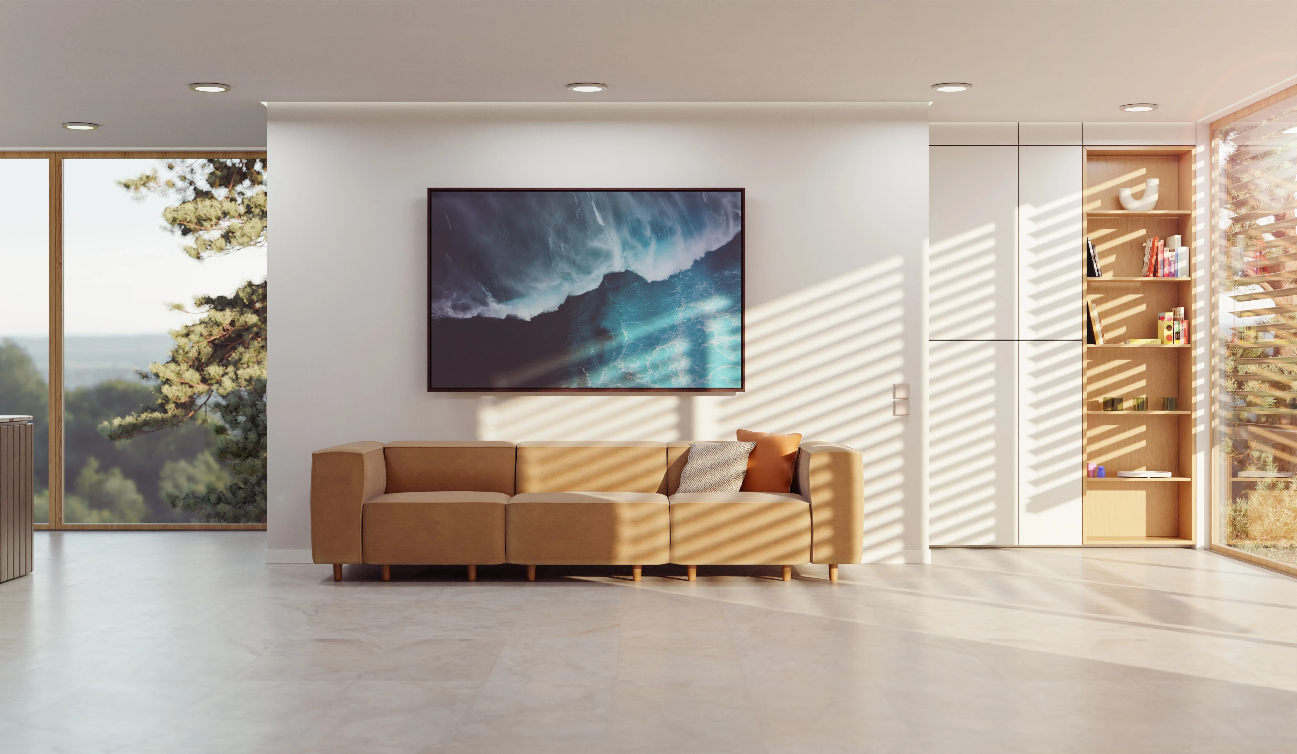 Für WhiteWall Media entstand ein modulares 3D-Asset-System aus individuell für die Marke entwickelten Interieurobjekten. Die Asset-Bibliothek ermöglicht es, virtuelle Räume flexibel für Animationen und Product-Shots zu komponieren. Durch die digitale Produktion besteht vollständige Kontrolle über Licht, Perspektive und Ambiente.